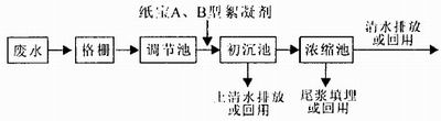 制 漿和抄紙車間所排出廢水, 經(jīng)由高密度斜篩、扇 形沉沙池、高壓浮選池, 除去廢水中的塑料粒、片、泥、 沙等預處理后, 用泵抽入高效廢水凈化器內(nèi), 在此廢水 與紙寶A、B 型絮凝劑進行混合和反應, 形成體積較大 的絮凝物流入凈化器下部錐形的沉淀濃縮區(qū), 濃縮液 排出凈化器后進入漿池回收再用或填埋, 清水由凈化 器上端流入清水池供回用或排出。