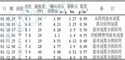表3 3200 機回用廢水尾漿后質(zhì)量情況對照表