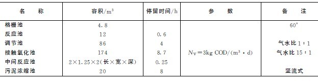 表2 上海針織五廠廢水處理主要構(gòu)筑物