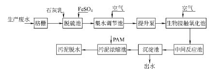 以生物接觸氧化法為主體的處理工藝,輔以調(diào)解預(yù)曝氣為前處理,以混凝沉淀為后處理,工藝適應(yīng)性強,運行穩(wěn)定,COD去除率為80%~90%,BOD去除率85%~95%,各項指標均能達到設(shè)計要求和排放要求。