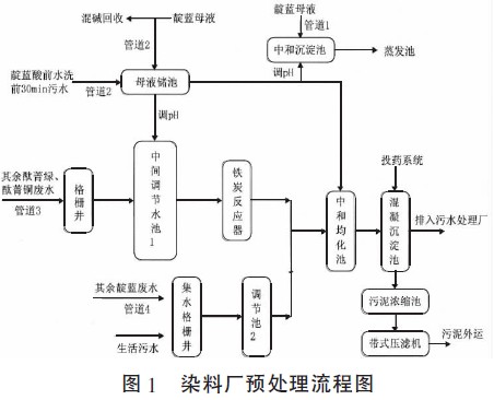 預(yù)處理站處理廢水為酞菁和靛藍(lán)兩種高濃度廢水, 設(shè)計規(guī)模3600 m3/d。