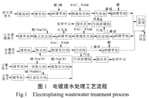 電鍍廢水種類繁多,成分復(fù)雜,在設(shè)計(jì)多種電鍍廢水處理工程時(shí),應(yīng)該科學(xué)、合理的對(duì)廢水分類,分水過細(xì),則構(gòu)筑物繁多,日常運(yùn)行費(fèi)居高不下,藥劑浪費(fèi)嚴(yán)重,分水過粗,則污染因子可能相互干擾,難以達(dá)到國(guó)家排放標(biāo)準(zhǔn)。