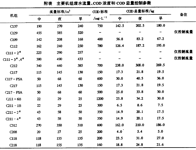 (3)在數(shù)據(jù)結(jié)果出來后,輸入電腦生成報表。完成一天(3班)總量控制報表。主要機組廢水流量、COD濃度和COD總量控制參數(shù)見附表。