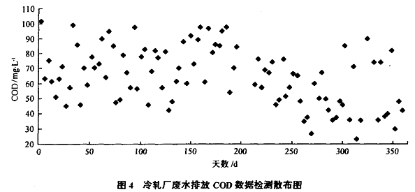 (2)COD標(biāo)準(zhǔn)是7~8月份現(xiàn)場取樣檢測統(tǒng)計數(shù)值,控制在平均值上,但排除了極端值。