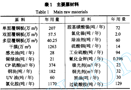 根據(jù)對(duì)生產(chǎn)線工序和生產(chǎn)用料的分析,一期該廠生產(chǎn)車間主要原材料列于表1。