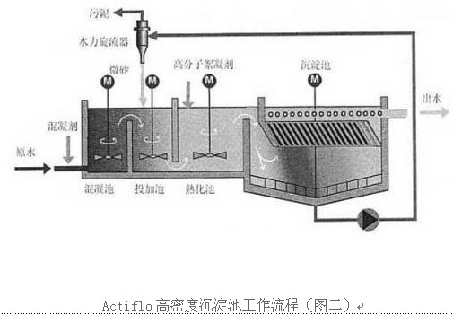 (1)ACTIFLO®高密度沉淀池工作流程,詳見下圖二。