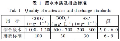 廢水具有以下特點: ① 生產(chǎn)廢水為季節(jié)性排放, 每年7月-10 月間排水量為700 m3 /d, 水量變化大; ② 生產(chǎn)廢水可生化性較好, BOD5 /COD 接近0. 6; ③ 綜合廢水SS含量高; ④廢水pH 較低、水溫較高 ( 25~ 30 ℃) , 易酸化。