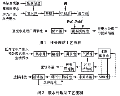 預(yù)處理站工藝流程見(jiàn)圖1,廢水處理站工藝流程見(jiàn)圖2。