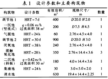 設(shè)計(jì)參數(shù)及主要構(gòu)筑物見表1。