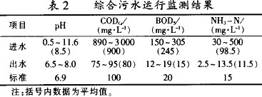 綜合污水運(yùn)行監(jiān)測(cè)結(jié)果見表2。