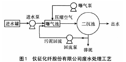 儀征化纖股份有限公司所排生產(chǎn)廢水中以乙二醇和精對苯二甲酸(PTA)等有機(jī)物為主,有機(jī)負(fù)荷變化較大。公司采用“復(fù)合生物曝氣”工藝處理生產(chǎn)廢水,具體處理流程如圖1。