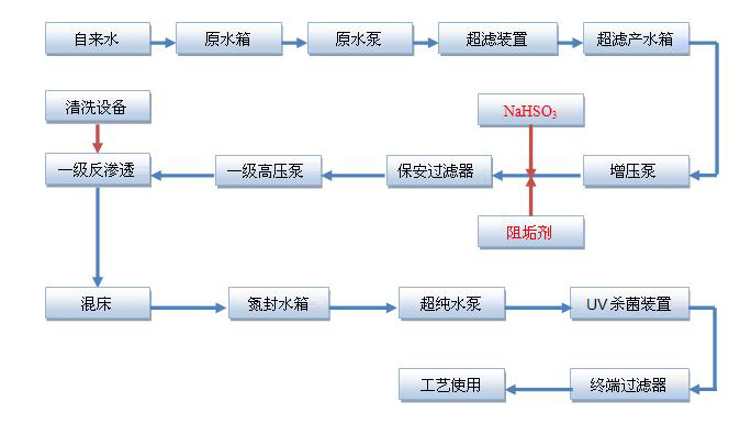 預(yù)處理系統(tǒng)UF產(chǎn)水水質(zhì):SDI≤3;余氯≤0.1PPM