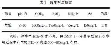 低濃度廢水的CODCr 在300~1800mg / L 之間,均值在1500mg / L 左右, NH3-N≤50mg / L。高濃度廢水的CODCr 在2000 ~15000mg / L 之間, 均值在 8000mg / L 左右, NH3-N≤100mg / L。源水中NH3-N 不高, 一般在50~100mg / L 之間, 但DMF (二甲基甲酰胺) 濃度高, 而DMF 水解產(chǎn)生二甲胺, 二甲胺在厭氧過程中會分解為大量的NH3-N, 其氨氮高達300~400mg / L 左右, 故廢水的典型特征是“雙高” (高CODCr、高NH3-N), 這也是合成革工業(yè)廢水生物處理的難點。