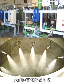 空氣霧化式降溫系統(tǒng)采用產(chǎn)生水霧的霧化裝置,噴出的水霧由熱的煙氣蒸發(fā),一個(gè)降溫系統(tǒng)的可靠運(yùn)行要求水霧能夠在即使比較低的溫度下也能完全蒸發(fā)。