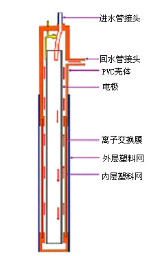 溶液進(jìn)入陽極管后,溶液因自重而流到陽極管底端。當(dāng)陽極系統(tǒng)處于運行狀態(tài)時,電泳漆液中的酸或增溶劑被陽極吸引發(fā)生遷移并通過選擇透過性的離子交換膜而進(jìn)入陽極管的電解質(zhì)溶液中,且隨著陽極液的漩流發(fā)生遷移,到達(dá)陽極管頂端,從頂端進(jìn)入回液管返回極液槽中,以此反復(fù)。