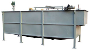 污水——引氣充氣段(與微氣泡均勻混合)——分離(微氣泡附著攜帶固體懸浮物上升到水面上)——刮漿(刮泥機沿液面運動,刮泥到傾斜的的金屬板上,排走)——水平螺旋推進器推污泥進污泥收集器——凈化水經(jīng)斜板下的溢流槽排出
