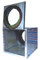 進出風(fēng)管在箱體進出風(fēng)口通過園變徑管裝消聲器,消聲器有微孔板單空腔、微孔板雙空腔、微孔板阻抗復(fù)合、阻性消聲器四類,消聲器在控制氣流未端送風(fēng)噪聲的同時控制管壁幅射噪聲污染。(隔聲箱可隨風(fēng)機倒或按在墻中。)
