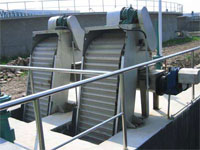 耙齒鏈運(yùn)轉(zhuǎn)到設(shè)備的上部時(shí),由于槽輪和彎軌的導(dǎo)向,使每組耙齒之間產(chǎn)生相對(duì)自清運(yùn)動(dòng),絕大部分固體物質(zhì)靠重力落下。另一部分則依靠清掃器的反向運(yùn)動(dòng)把粘在耙齒上的雜物清掃干凈。