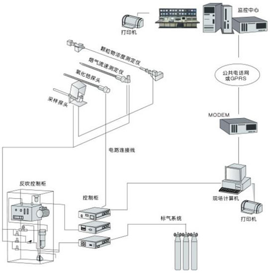 該系統(tǒng)主要包括:氣態(tài)污染物監(jiān)測(cè)子系統(tǒng)、煙塵(顆粒物)濃度監(jiān)測(cè)子系統(tǒng)、煙氣參數(shù)子系統(tǒng)、數(shù)據(jù)采集數(shù)據(jù)處理及遠(yuǎn)程通訊子系統(tǒng)。