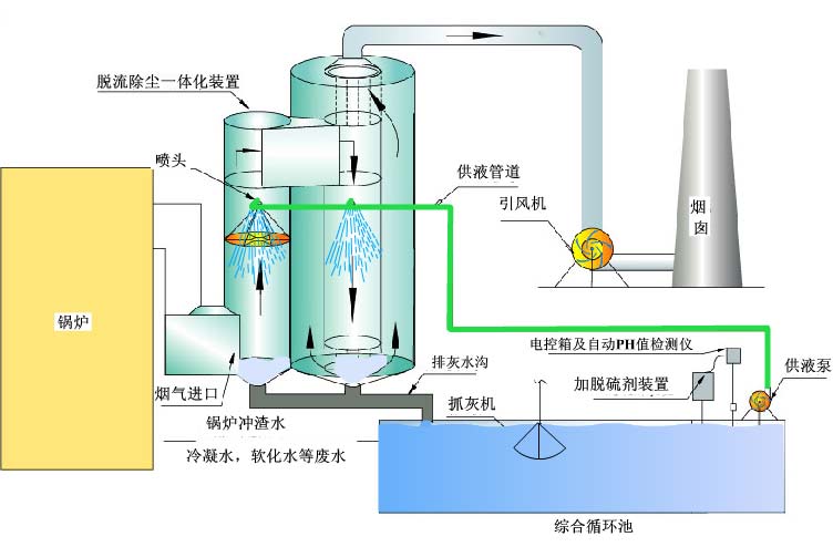 關(guān)鍵詞:雙塔組合,脫硫除塵,一體化
