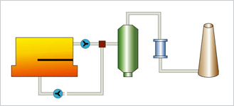 采用鍋爐脫硫裝置正壓運(yùn)行,將煙氣回流裝置加裝在鍋爐引風(fēng)機(jī)和脫硫裝置之間;對(duì)于已經(jīng)加裝負(fù)壓運(yùn)行的除塵和脫硫裝置的工況,也可使用,但有可能要適當(dāng)增加引風(fēng)機(jī)的壓頭(根據(jù)除塵和脫硫裝置漏風(fēng)量確定)。