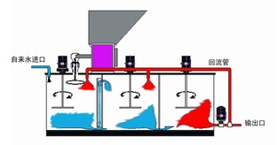 初次使用時,應(yīng)將三個加藥箱的水注到箱體的2/3處時,再將固體干粉加料裝置打開,調(diào)整到一定的比例后,同時加水和固體干粉,此時應(yīng)打開各箱的攪拌電機(jī)及回流水泵,以便將三個藥箱的藥液稀釋均勻。