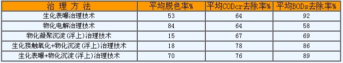 (3)當(dāng)廢水色度為200-600倍,CODcr為450-700mg/L,BODs為200-400mg/L(BODs/CODcr>0.3),PH為6-9時可采用生化+物化凝聚沉淀(浮上)法一級處理,經(jīng)處理后水質(zhì)可達標(biāo)。
