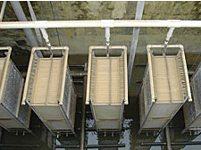 MBR是一種將高效膜分離技術(shù)與傳統(tǒng)活性污泥法相結(jié)合的新型高效污水處理工藝,它用具有獨(dú)特結(jié)構(gòu)的MBR平片膜組件置于曝氣池中,經(jīng)過(guò)好氧曝氣和生物處理后的水,由泵通過(guò)濾膜過(guò)濾后抽出。它與傳統(tǒng)污水處理方法具有很大區(qū)別,取代了傳統(tǒng)生化工藝中二沉池和三級(jí)處理工藝。