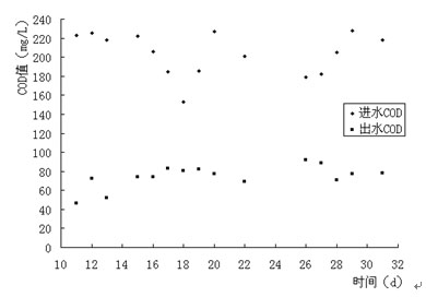 圖2進(jìn)出水COD值