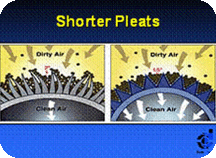 濾材折子縮短折尖至內(nèi)網(wǎng)層的距離,由2”變成1.5”可加大濾材的強(qiáng)度,避免粉塵卡在扭曲的折子里,使高壓空氣逆洗的效果更好。