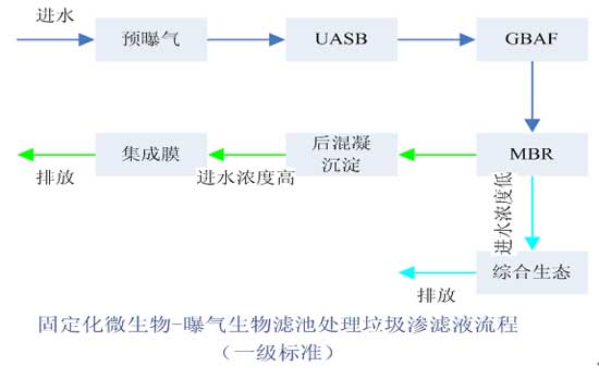 垃圾滲濾液氨氮含量很高,抑制了傳統(tǒng)活性污泥法中微生物活性,從而大大降低活性污泥系統(tǒng)對污染物的去除效率。而北京大學(xué)環(huán)境工程研究所和深圳蓋雅環(huán)境科技有限公司共同開發(fā)的固定化微生物-曝氣生物濾池技術(shù)(GAIA-BAF),解決了這一難題,在生物脫氮方面,達(dá)到了國際領(lǐng)先水平。通過固定化微生物-曝氣生物濾池處理的廢水,氨氮濃度在20mg/L以下,COD也大幅度下降。此技術(shù)已經(jīng)成功用于深圳龍崗中心城垃圾焚燒發(fā)電廠滲濾液處理和深圳布吉甘坑垃圾滲濾液處理工程,其中布吉工程獲得國家環(huán)保局國家重點環(huán)境保護(hù)實用技術(shù)示范工程。