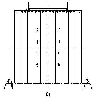 (1)將原來(lái)的長(zhǎng)陽(yáng)極排一分為二,改成兩個(gè)短陽(yáng)極排后,既能保證極間距不變,使電場(chǎng)有效運(yùn)行電壓不降低,又可以使原陽(yáng)極排前后部分振打周期得以協(xié)調(diào),進(jìn)而提高陽(yáng)極排前半部和后半部收塵面積的有效利用率。采用雙側(cè)振打,前后振打時(shí)互不干擾,前半部振打時(shí)產(chǎn)生的二次揚(yáng)塵,后半部仍能收集,從而大幅度地提高了收塵效率,使一個(gè)電場(chǎng)在工況運(yùn)行時(shí)起到超過(guò)一個(gè)電場(chǎng)的作用。