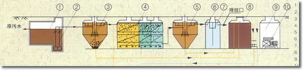 (1)初沉池:設備初沉池為豎流式沉淀池,污水在沉淀池的上升流速為0.6-0.7毫米/秒,沉淀下來的污泥用空氣提至污泥池。(注:WSZ-A O.5-5m3/h不設初沉池)