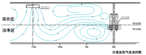 在廠房高度范圍內(nèi)形成兩個區(qū)域,下部為溫度適宜清潔區(qū),上部為溫度較高的混合區(qū);