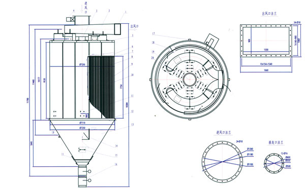 SY-GYD系列高溫大布袋除塵器是我公司在總結(jié)各種系列大型高溫袋式除塵器的基礎(chǔ)上研發(fā)的具有自主知識(shí)產(chǎn)權(quán)的專利產(chǎn)品(專利號(hào)為ZL03278847.9)。它通過結(jié)構(gòu)優(yōu)化設(shè)計(jì),在仍保留LFEF型玻纖袋式除塵器的分室反吹結(jié)構(gòu)基礎(chǔ)上,采用新穎的圓筒本體結(jié)構(gòu)、頂部進(jìn)風(fēng)、經(jīng)中心進(jìn)風(fēng)管導(dǎo)入下部,均勻進(jìn)入各室,這不但解決了除塵設(shè)備的結(jié)露、腐蝕、高溫?zé)、粉塵粘袋糊袋等問題,同時(shí)也解決了LFEF、低壓脈沖長(zhǎng)袋等其它種類玻纖袋式除塵器的上花板積灰與各室進(jìn)風(fēng)不均勻的難題。