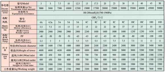 玻璃鋼酸霧凈化塔主要參數(shù)