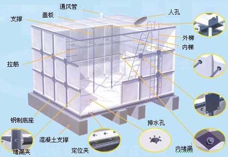 北京華夏大禹公司生產(chǎn)的SMC組合式水箱,是目前國際上普遍采用的新型水箱其獨特性能徹底解決混凝土水箱重量大、易滲透和鋼板水箱的腐蝕及防腐涂層脫落對水質(zhì)的污染等問題具有無滲漏、重量輕、水質(zhì)、外型美觀、使用壽命長和安裝方便等優(yōu)點。