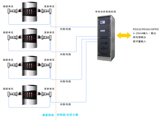 LGA-3000分布式激光過程分析系統(tǒng)采用獨立的測量單元和集中控制的中央單元的系統(tǒng)結構,可實現(xiàn)多達八個不同測量應用(不同工藝點和氣體組份)的同時檢測。各測量通道獨立的激光器和光電測量模塊確保了系統(tǒng)的高可靠性,即使中央單元或某個測量通道出現(xiàn)問題,也不會影響其他通道測量。