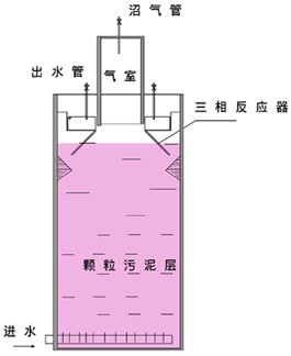 廢水中的有機(jī)污染物在厭氧條件下,經(jīng)微生物降解,轉(zhuǎn)化成甲烷、二氧化碳等,甲烷氣體可做為能源再次利用,用于鍋爐燃燒等,既去除了有機(jī)污染物又回收了能源。UASB反應(yīng)器的主體是內(nèi)裝顆粒厭氧污泥(或絮狀污泥)的容器,在其上部設(shè)置專(zhuān)用的氣、液、固分離系統(tǒng)(即三相分離器),它可使反應(yīng)器中保持高活性及良好沉淀性能的厭氧微生物,是處理高濃度有機(jī)廢水(特別是碳水化合物廢水)非常有效的工藝。