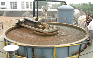 處理過的部分廢水循環(huán)流入溶氣罐,在加壓空氣狀態(tài)下,空氣過飽和溶解,然后在氣浮池的入口處與加入絮凝劑的原水混合,由于壓力減小,過飽和的空氣釋放出來,形成了微小氣泡,迅速附著在懸浮物上,將它提升至氣浮池的表面。從而形成了很容易去除的污泥浮層,較重的固體物質(zhì)沉淀在池底,也被去除。