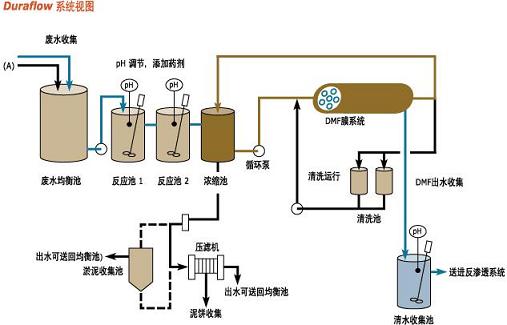 DF膜系統(tǒng)(DMF)是以固液分離來過濾經(jīng)過化學(xué)預(yù)處理之后的廢水,對(duì)于含有重金屬的廢水的處理效果尤為理想。