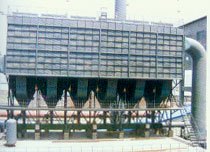 該除塵器采用箱室結(jié)構(gòu),將箱體分成若干個室,各室獨立工作。精灰形式為整箱大脈沖閥循環(huán)反吹噴射清類,綜合了分室反吹和脈沖噴吹清灰等袋式除塵器的優(yōu)點,上箱體設(shè)計成上揭蓋形式,換袋時,打開頂蓋,直接抽出濾袋及框架即可;灰斗采用螺旋輸灰機和回轉(zhuǎn)卸料器輸貯灰。