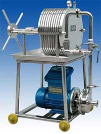 不銹鋼板框過(guò)濾器均采用 SUS304 或 SUS316L 優(yōu)質(zhì)不銹鋼材料制造,耐腐蝕,經(jīng)久耐用,本機(jī)濾板采用螺紋狀結(jié)構(gòu),可根據(jù)不同過(guò)濾介質(zhì)和生產(chǎn)工藝 ( 初濾。半精濾。精濾 ) 要求,更換不同濾材,直接用微孔濾膜能達(dá)到無(wú)菌的目的。用戶還可以根據(jù)過(guò)濾量的大小,相應(yīng)減少或增加層數(shù),使之流量適合過(guò)濾要求,本機(jī)工作時(shí)加壓密封過(guò)濾,液料無(wú)損耗,液體澄清度好,本機(jī)還可以根據(jù)用戶需要特制多級(jí)過(guò)濾裝置,一級(jí)存放較粗濾材,二級(jí)可放較細(xì)濾材,既節(jié)省生產(chǎn)時(shí)間和成本,又能滿足生產(chǎn)需要,本機(jī)所有密封部件采用硅橡膠密封圈,耐高溫。無(wú)毒。無(wú)滲漏,密封性能好又能提高過(guò)濾精度,而且還可以設(shè)有回流裝置,濾材裝配或清洗極為方便,在泵停止轉(zhuǎn)動(dòng)后,打開(kāi)回流閥,所有沉淀物自動(dòng)回出,同時(shí)可用清水從回流管進(jìn)行反沖。