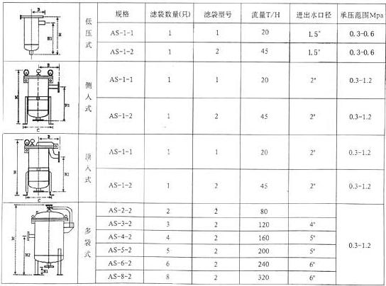 濾機(jī)規(guī)格齊全,有低壓式、側(cè)入式、頂入式、多袋式。