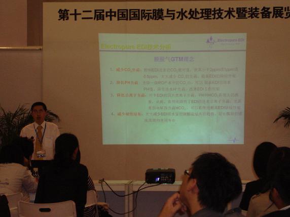 15日下午14:30-15:30展會B場會議室,伊樂科環(huán)保科技(上海)有限公司舉辦了一場別開生面的技術(shù)研討會,孫圣東總經(jīng)理就《Electropure EDI應(yīng)用技術(shù)》這一技術(shù)專題與蒞臨本屆水展的行業(yè)人士,進(jìn)行了面對面的交流。