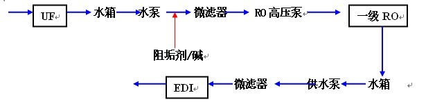 二.UF+SF+加堿+RO+EDI(一級(jí)RO工藝)