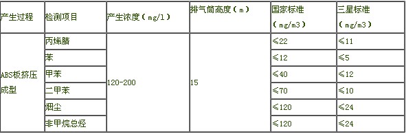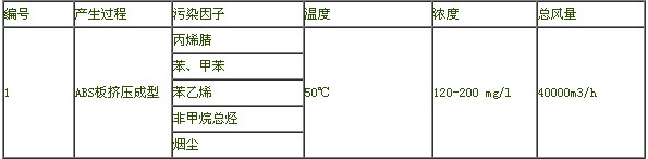 根據(jù)業(yè)主提供的資料,冰箱擠板過程產(chǎn)生的廢氣污染因子以及產(chǎn)生濃度如下表:
