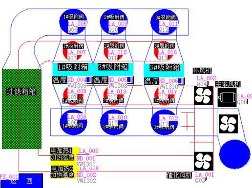 控制系統(tǒng):控制系統(tǒng)對系統(tǒng)中的風機、預熱器、溫度、電動閥門進行控制。當系統(tǒng)溫度達到預定的催化溫度時,系統(tǒng)自動停止預熱器的加熱,當溫度不夠時,系統(tǒng)又重新啟動預熱器,使催化溫度維持在一個適當?shù)姆秶划敶呋驳臏囟冗^高時,開啟補冷風閥,向催化床系統(tǒng)內(nèi)補充新鮮空氣,可有效地控制催化床的溫度,防止催化床的溫度過高。此外,系統(tǒng)中還有防火閥,可有效地防止火焰回串。當活性碳吸附床脫附時溫度過高時,自動啟用補冷風機降低系統(tǒng)溫度,溫度超過報警值,自動開啟火災應急自動噴淋系統(tǒng),確保系統(tǒng)安全,整個系統(tǒng)采用PLC自動控制。