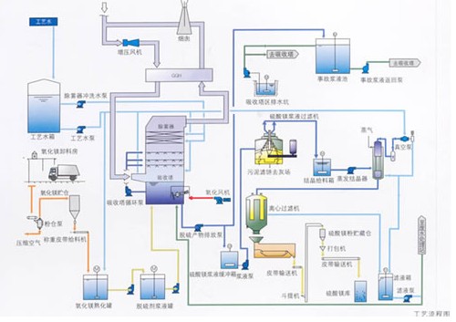 三、氧化鎂-七水硫酸鎂濕法脫硫工藝流程: