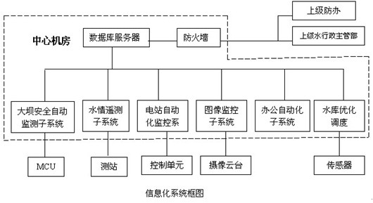 水庫信息化系統(tǒng)主要由水電站自動化監(jiān)控系統(tǒng)、大壩安全自動化監(jiān)測系統(tǒng)、水情遙測系統(tǒng)、辦公自動化系統(tǒng)、水庫優(yōu)化調(diào)度系統(tǒng)、閘門監(jiān)控系統(tǒng)、圖像監(jiān)控系統(tǒng)、Web綜合信息發(fā)布系統(tǒng)等組成,通過計算機網(wǎng)絡(luò)系統(tǒng)把各子系統(tǒng)整合起來,實現(xiàn)系統(tǒng)間數(shù)據(jù)共享、協(xié)同工作來提供一個信息訪問平臺。實現(xiàn)基于局域網(wǎng)的系統(tǒng)資源共享(如打印機、硬盤資源,文檔共享等)。采用數(shù)據(jù)庫管理技術(shù)集中處理信息結(jié)合Web技術(shù)應(yīng)用,開發(fā)基于B/S方式的Web綜合信息發(fā)布系統(tǒng),能夠方便直觀地讓用戶得到各系統(tǒng)的信息。通過建設(shè)光纖通道、無線接入、DDN專線等方式接入互聯(lián)網(wǎng),能夠及時了解氣象信息、衛(wèi)星云圖等專業(yè)信息,以Web方式為上級主管部門提供信息查詢平臺,同時也可實現(xiàn)移動辦公。